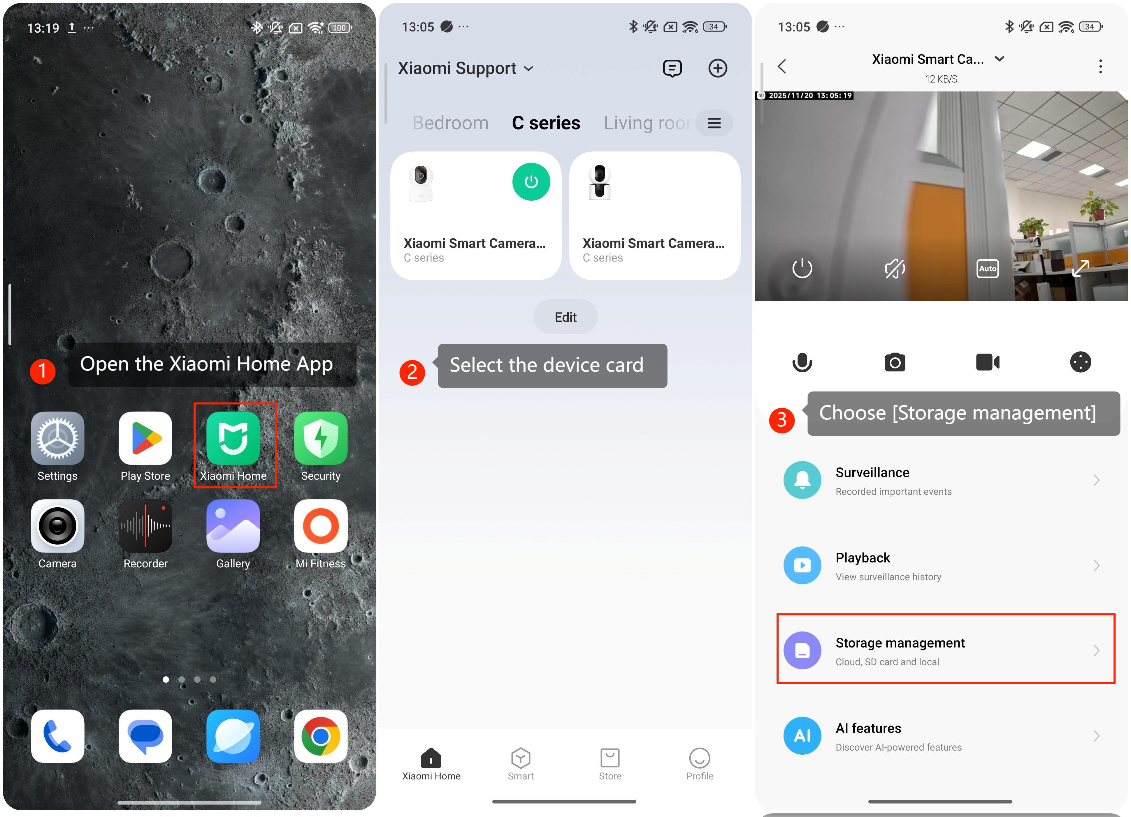 Filmy nagrane przez Xiaomi Home Secure można usuwać bezpośrednio za pomocą aplikacji Xiaomi Home. Pozwala to usuwać niechciane lub przestarzałe materiały z chmury, zwalniając miejsce na miejscu i utrzymując porządek w bibliotece wideo.
