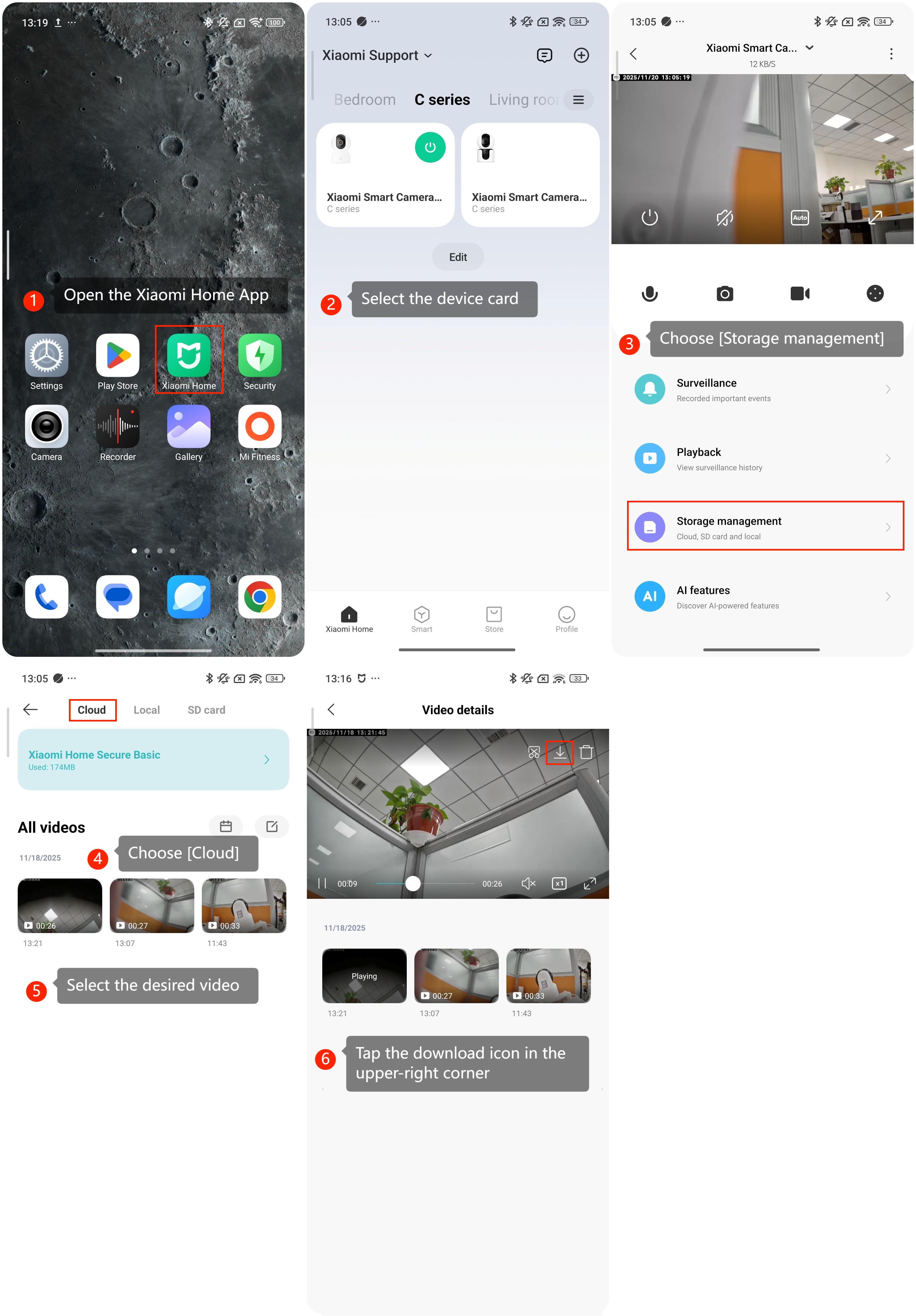 Aby pobrać wideo nagrane przez Xiaomi Home Secure, prosimy o zastosowanie następujących metod:
