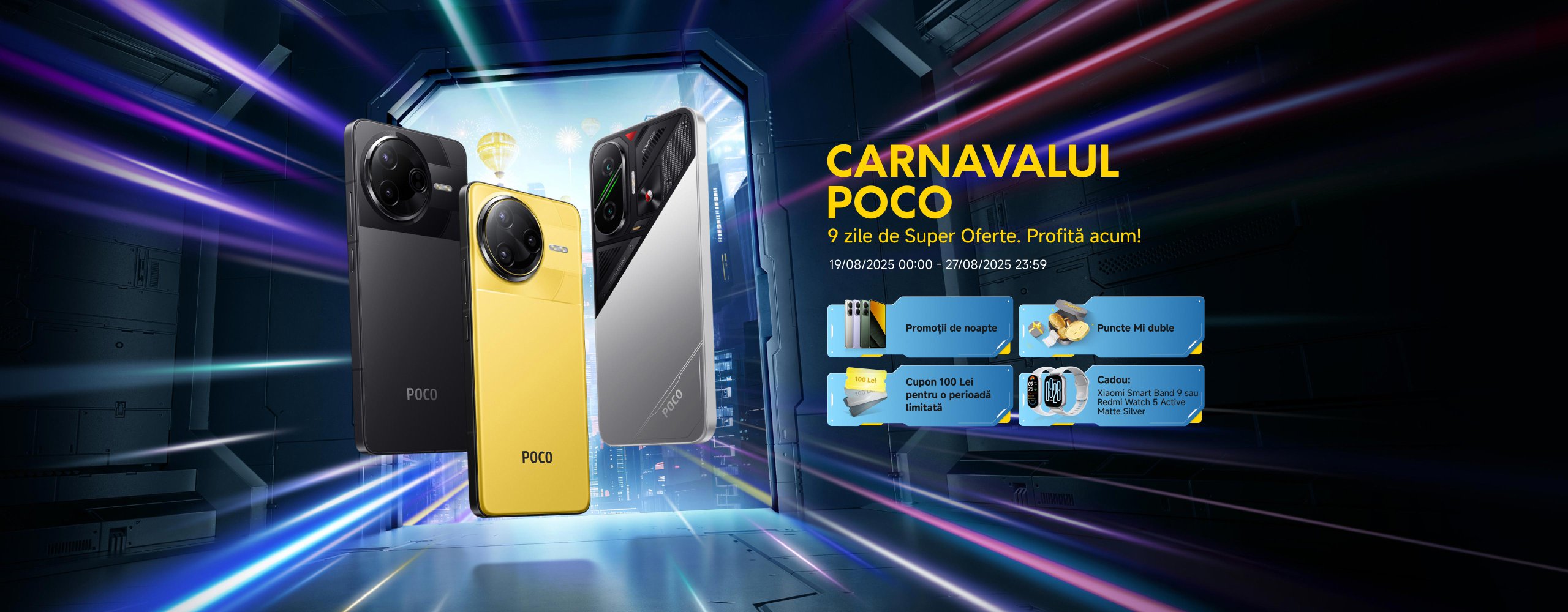Obține cupoane în 13/08-27/08 pentru a beneficia de o reducere de 100 de lei. Numai pentru POCO X7 Pro/POCO F7/POCO F7 Pro/POCO F7 UltraRezistență la apă și praf IP68*