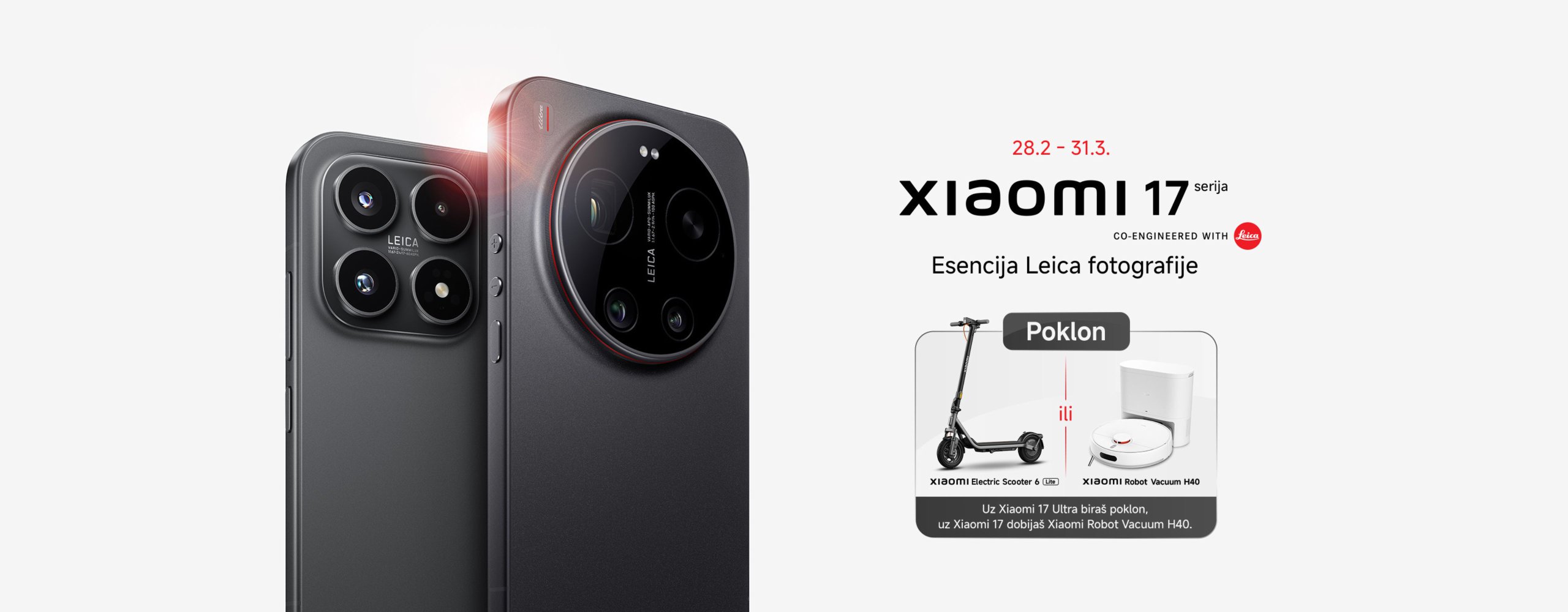 Besplatan poklon (izbor jednog od dva): Xiaomi Robot Vacuum H40 ili Xiaomi Electric Scooter 6 Lite Saznajte više