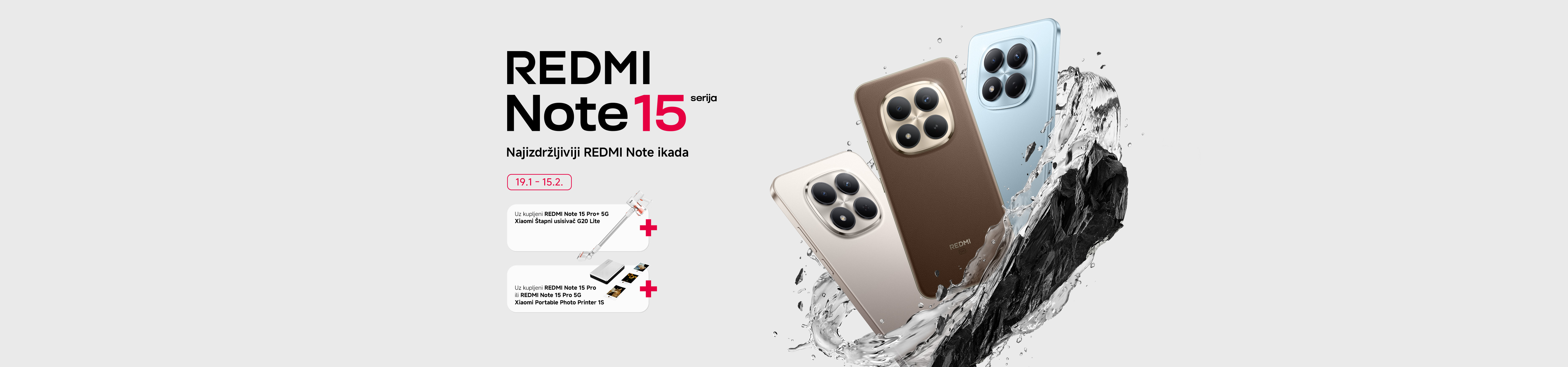 • Uz kupovinu Redmi Note 15 Pro+ 5G poklon Xiaomi Štapni usisivač G20 Lite,