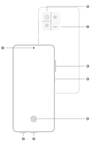 Иллюстрация носит справочный характер. Датчик отпечатков пальцев может располагаться на кнопке питания или в нижней части экрана.