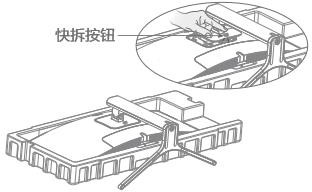 4) Закрепите собранный базовый кронштейн в зафиксированном положении на задней части монитора. (Потяните кнопку вверх, чтобы снять опору);
