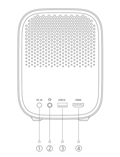 Примечание: ① Люмены ANSI — это метод, разработанный Американским национальным институтом стандартизации для измерения светового потока проекторов. Конкретные параметрыуказаны ниже: 1) Расстояние между проектором и экраном: 2,4 метра. 2) Экран 60 дюймов в длину. 3) Измерьте освещенность каждой точки на девяти точках пересечения формы глифа «поля» экрана с помощью измерительной ручки, умножьте на площадь и получите яркость девяти точек проецируемого экрана. 4) Установите среднюю яркость по 9 точкам, что соответствует люменам ANSI. Могут быть разные результаты из-за разных условий испытаний. Люмены 500 ANSI — это значения, измеренные в лаборатории. ② Под температурой условий понимается максимальное значение в децибелах, измеренное в лаборатории при температуре 25 ℃ и расстоянии 1 метр от Mi Smart Compact Projector. 3. В: Внешний вид Mi Smart Compact Projector О: Как показано
