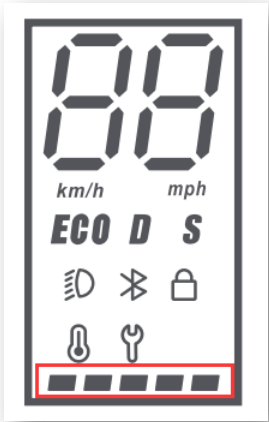 9.В: Как будет выглядеть индикатор батареи при использовании Mi Electric Scooter 1S? О: На панели управления есть пять световых индикаторов. Каждый световой индикатор показывает состояние заряда 20%. Индикатор батареи обычно горит и мигает. Когда количество электричества в каждой ячейке составляет 10%-20%, индикатор всегда включен; когда заряд батареи составляет менее 10% (последний индикатор горит красным мигающим светом, а другой индикатор горит белым).
