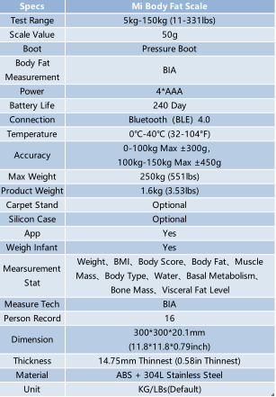 1. В: Каковы характеристики весов Mi Body Fat Scale? О: