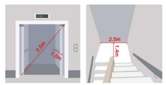 7. س: حول بيئة التسليم والتركيب. ج: من أجل ضمان التسليم السلس والتركيب العادي ، يرجى تأكيد بيئة التسليم والتركيب قبل الشراء. تأكد مما إذا كان المصعد / الدرج في المنزل يلبي المتطلبات التالية: 1. الرفع: رفع الباب طول قطري من 2.5m أو أكثر، وعرض رفع من 1.5m أو أكثر. 2. السلالم: تحول عرض الزاوية من 2.5m أو أكثر، والمسافة من الدرابزين إلى الجدار من 1.4m أو أكثر. ارجع إلى الصور أدناه: 3. يخضع التوافر المحدد للتسليم والتركيب لسياسة ما بعد البيع.