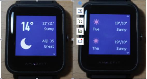 27. كيفية عرض الطقس على الساعة؟ من الشاشة الرئيسية للساعة، اسحب لليسار حتى تجد الطقس. اضغط على الطقس سترى بيانات الطقس الحالية مثل درجة الحرارة والطقس ومؤشر جودة الهواء (AQI). اسحب لأعلى سترى توقعات الطقس لمدة 6 أيام. إذا كانت ساعتك لا تعرض بيانات الطقس أو لم تكتمل البيانات، يرجى فتح تطبيق Mi Fit والسحب لأسفل للمزامنة.