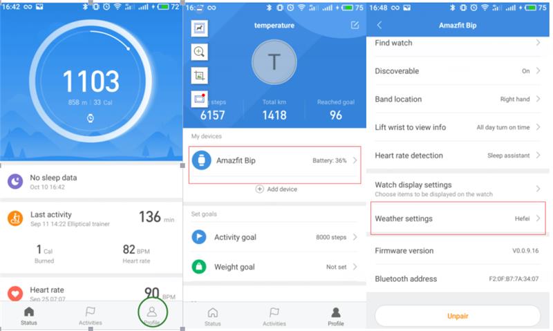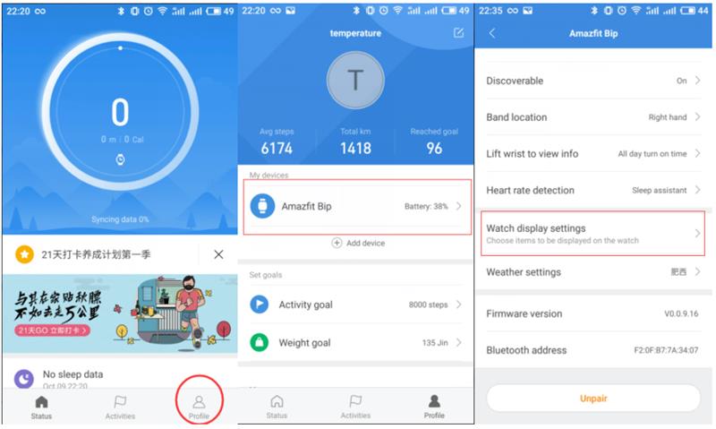 لتوصيل Amazfit Bip بهاتفك ، قم بتنشيط Bluetooth على هاتفك المحمول ، وافتح تطبيق Mi Fit ، وانقر فوق "لا توجد أجهزة مقترنة" في الشاشة الرئيسية للتطبيق (انقر فوق الزاوية اليمنى "الملف الشخصي" ---"جهازي") ، انقر فوق "مشاهدة" وانقر فوق "Amazfit Bip" للإقران.