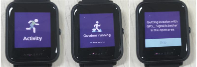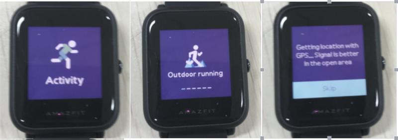 يدعم Amazfit Bip الجري في الهواء الطلق وجهاز المشي وركوب الدراجات والمشي. من الشاشة الرئيسية للساعة، اسحب لليسار حتى تعثر على النشاط. انقر فوق النشاط، يمكنك الوصول إلى الجري في الهواء الطلق. اسحب لليسار من واجهة الجري في الهواء الطلق ، يمكنك الوصول إلى جهاز المشي وركوب الدراجات والمشي. هنا ، نأخذ الجري في الهواء الطلق كمثال. اضغط على الجري في الهواء الطلق ، ستبدأ الساعة تلقائيا في البحث عن إشارة GPS ولكن يمكنك تخطي هذه الخطوة في تلك اللحظة من خلال النقر على زر "تخطي". ومع ذلك ، سيظل يبحث في نظام تحديد المواقع العالمي (GPS) أثناء نشاطك. إذا تم بدء تشغيل خيار GPS وبدء تشغيله ، فستوفر الساعة العد التنازلي لمدة 3 ثوان قبل بدء التتبع. يمكنك الضغط لفترة طويلة على الزر الفعلي "للإيقاف المؤقت" والنقر على "متابعة" للمتابعة أو النقر على "إنهاء" للتوقف. بعد الانتهاء والمزامنة، يمكنك عرض مسار GPS وتفاصيله في الساعة وتطبيق Mi Fit.