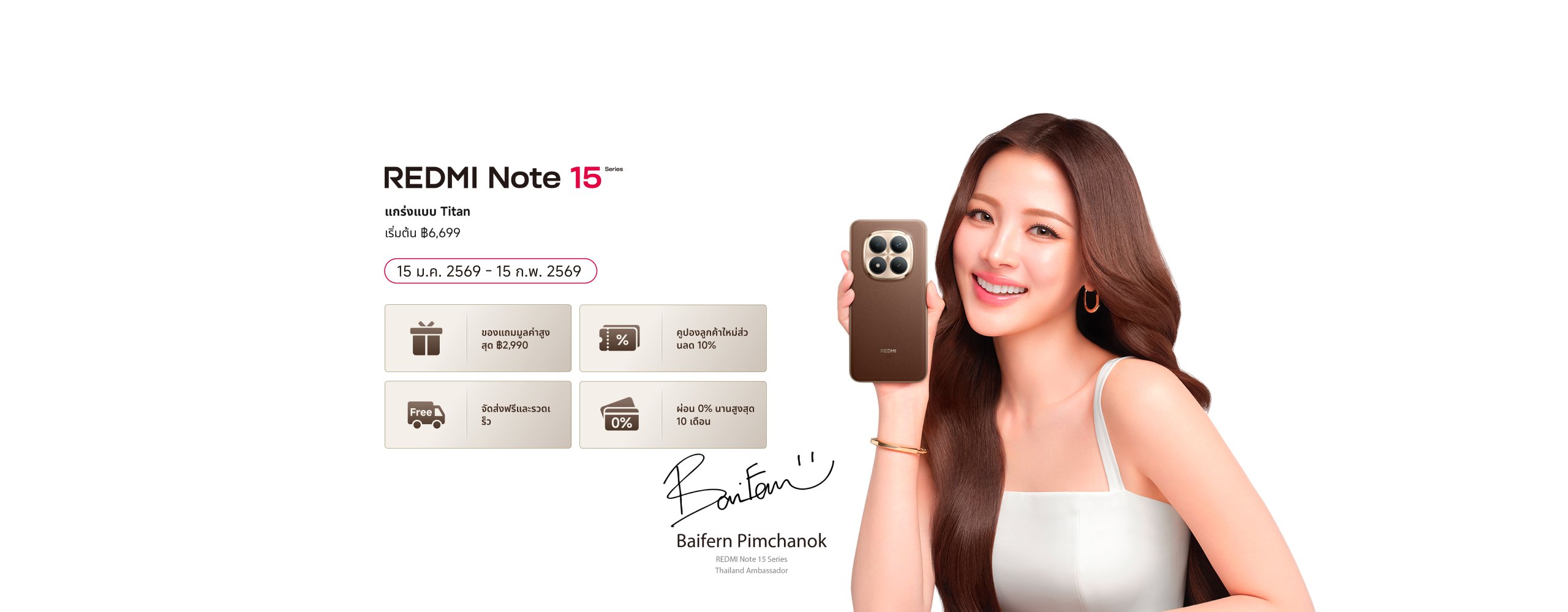 ซื้อ REDMI Note 15 series รับของแถมมูลค่า 13687.-*แบตเตอรี่ 6500mAh (typ) พร้อม 100W ไฮเปอร์ชาร์จ