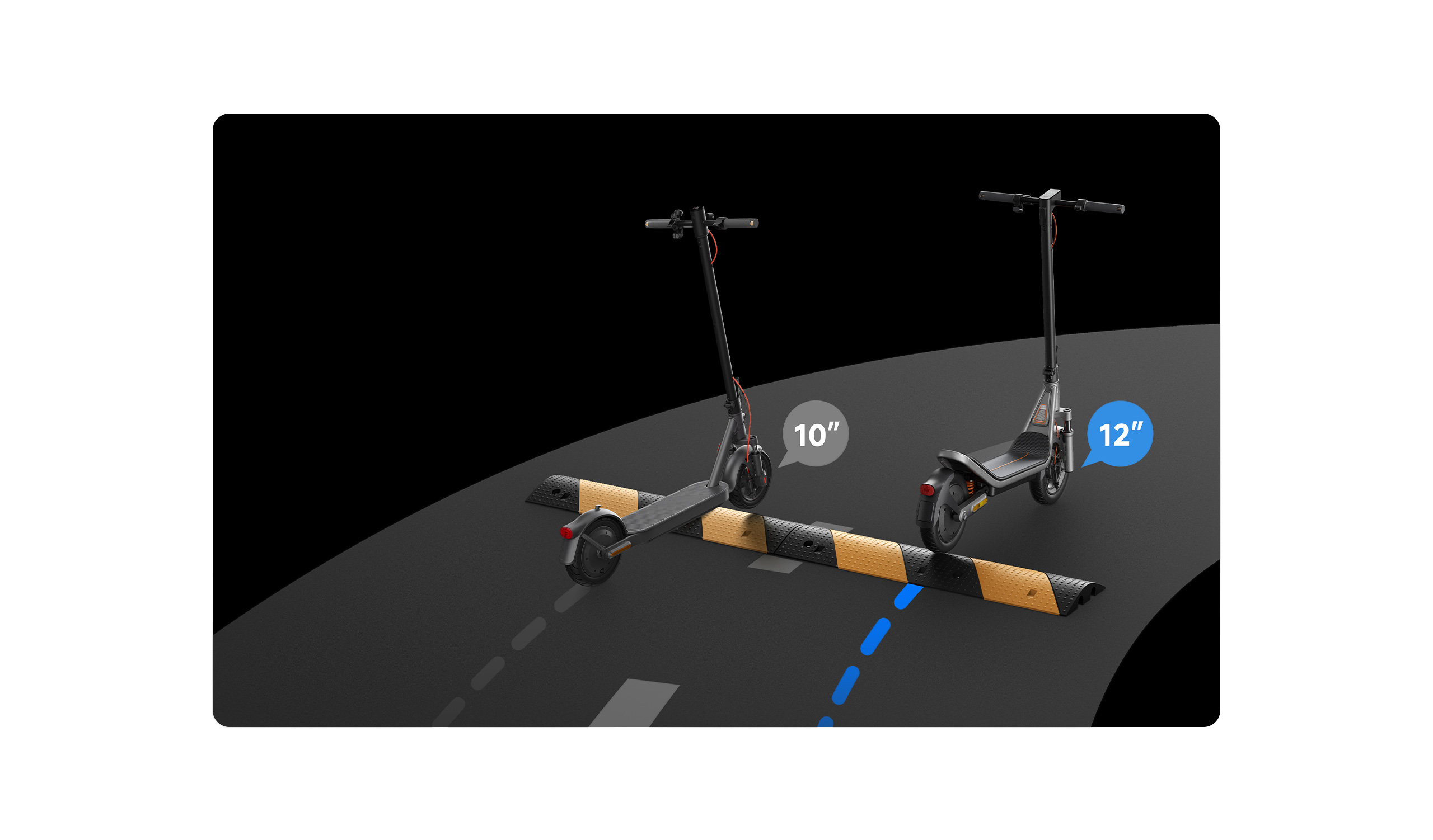 10. ความเร็วสูงสุดในโหมด Sport: ทำการทดสอบสกูตเตอร์ไฟฟ้าที่ชาร์จเต็มในโหมด Sport ณ อุณหภูมิห้อง (25 ± 5°C) และความเร็วลมเฉลี่ยไม่เกิน 3m/s สกูตเตอร์ถูกเร่งในพื้นที่ขับขี่เสริม รักษาความเร็วสูงสุดในเขตทดสอบ และทำความเร็วถึง 25 กม./ชม. โดยวัดด้วยมาตรวัดรอบ บลูทูธ หรือแผงหน้าปัด ทั้งนี้ ความเร็วสูงสุดอาจแตกต่างกันไปขึ้นอยู่กับประเทศหรือภูมิภาค และเป็นไปตามข้อบังคับท้องถิ่น