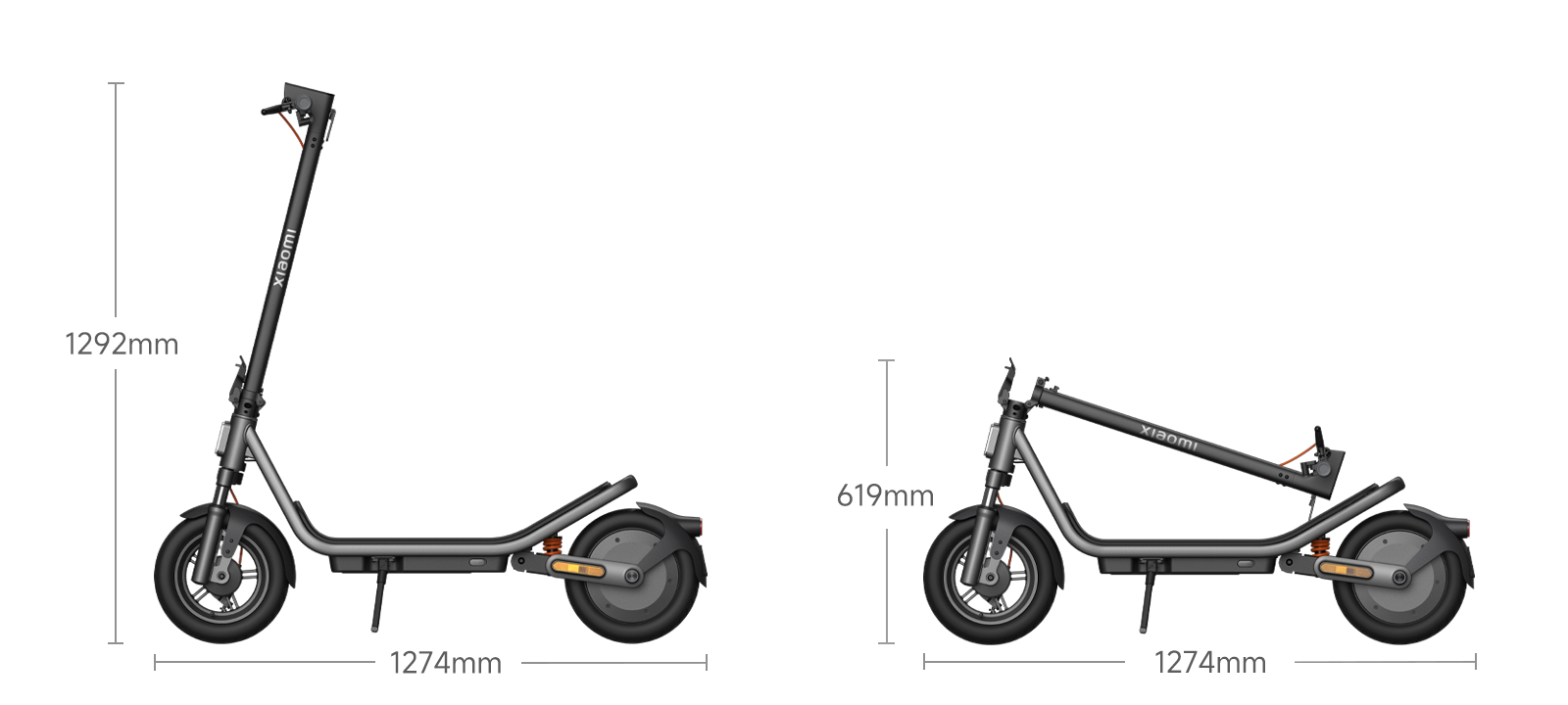 1274 x 595 x 619 มม. (พับ)
