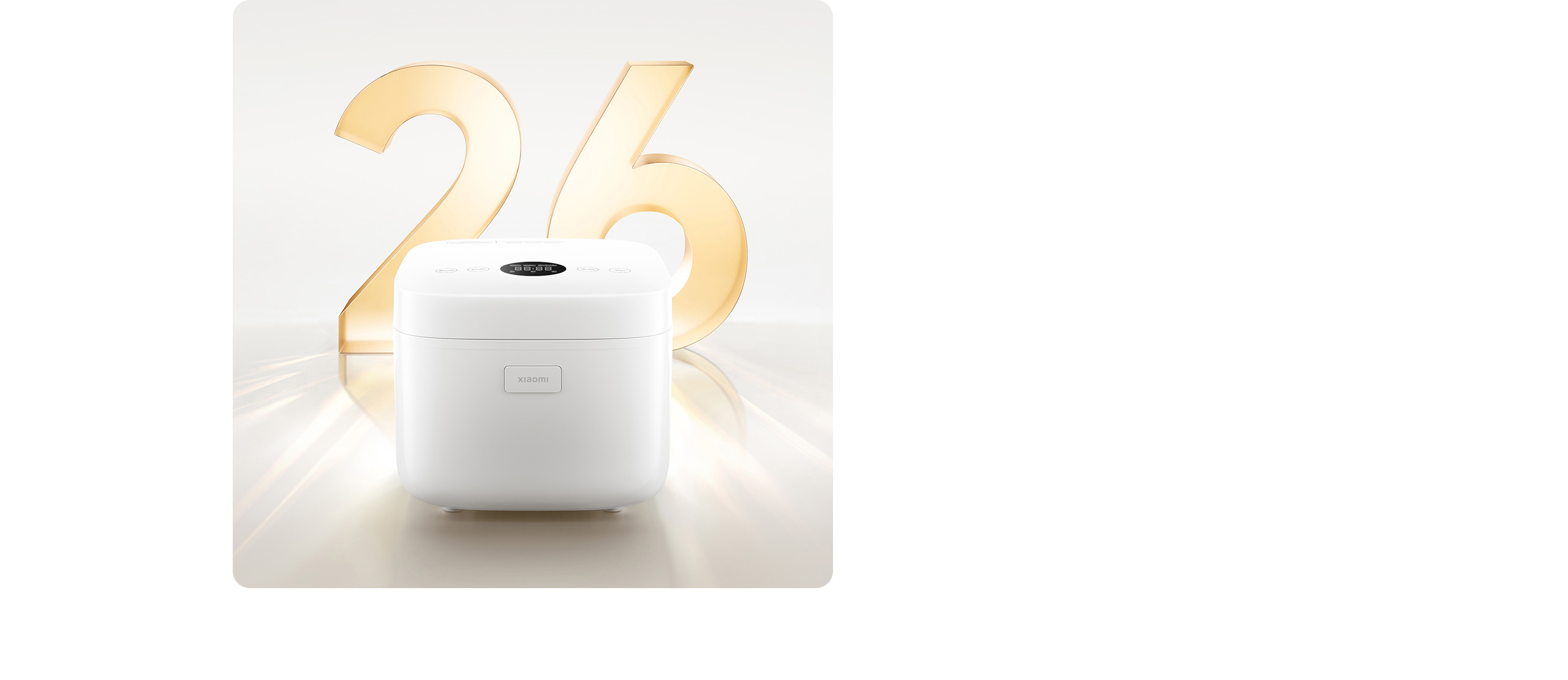 *ทดสอบข้อมูลโดยผู้ผลิต ในโหมด Quick Rice หม้อหุงข้าวใช้เวลา 26 นาทีในการหุงข้าว 1 ถ้วย (เทียบเท่าข้าวสวย 2 ชาม) ระยะเวลาการหุงจะปรับอัตโนมัติตามปริมาณข้าวที่หุง อาจเกิดความแตกต่างระหว่างการใช้งานจริงเนื่องจากสภาพแวดล้อมและวัตถุดิบที่ใช้