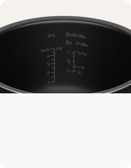 หม้อในหนา 2.0 มม. ช่วยกักเก็บความร้อนได้อย่างมีประสิทธิภาพ เพื่อการหุงที่สม่ำเสมอ พื้นผิวไม่ติดหม้อทำให้ทำความสะอาดง่าย และการเคลือบคริสตัลสีดำแบบเสริมความแข็งแรงช่วยเพิ่มความทนทานและต้านการสึกหรอ
