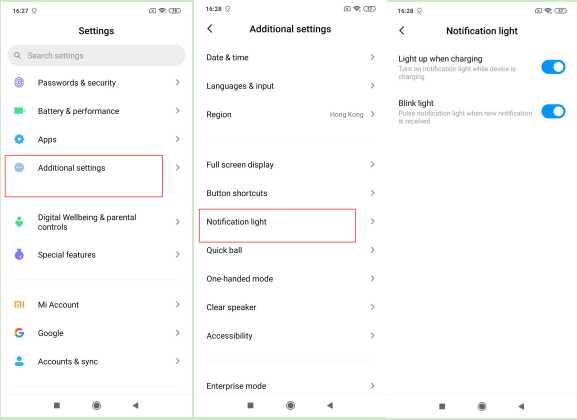 วิธีการตั้งค่าเฉพาะ: การตั้งค่า>> การตั้งค่าเพิ่มเติม>>ไฟแจ้งเตือนเลือกไฟแจ้งเตือน