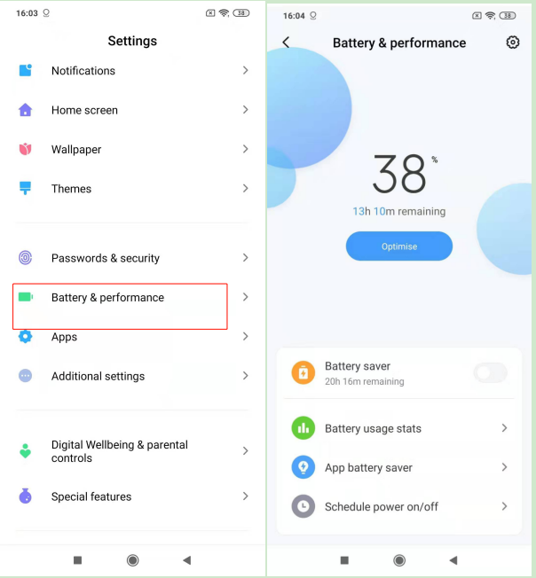 วิธีการตั้งค่าเฉพาะ: การตั้งค่า>> แบตเตอรี่และประสิทธิภาพตรวจสอบแบตเตอรี่