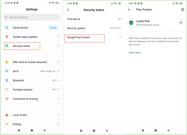วิธีการตั้งค่าเฉพาะ: การตั้งค่า>> สถานะความปลอดภัย>> Google Play Protect