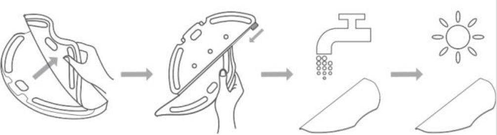 2. เปิดไม้ถูพื้นจากด้านหลังของแผ่นม็อบแล้วเลื่อนไม้ถูพื้นออกไปทางด้านขวาดังแสดงในรูป ไม้ถูพื้นสามารถล้างทําความสะอาดได้