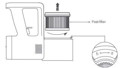 ถอด Post-filter โดยหมุนทวนเข็มนาฬิกา