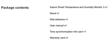 5. ถาม: เนื้อหาในแพ็คเกจของ Xiaomi Smart Temperature and Humidity Monitor 3 คืออะไร?