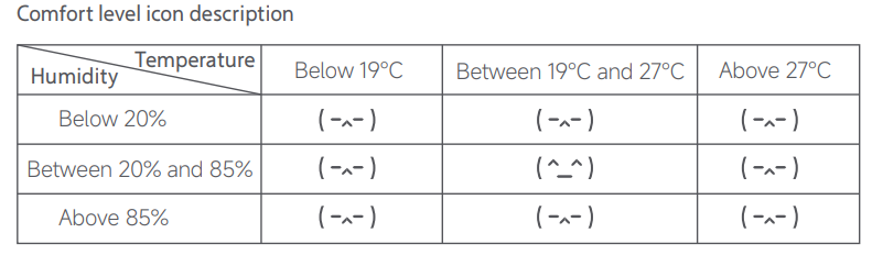 ตอบ: สํานวนที่แสดงบน Xiaomi Smart Temperature and Humidity Monitor 3 แสดงถึงระดับความสะดวกสบาย การแสดงออกรอยยิ้มบ่งบอกถึงความสบายใจ ในขณะที่การแสดงออกเศร้าบ่งบอกถึงความรู้สึกไม่สบาย