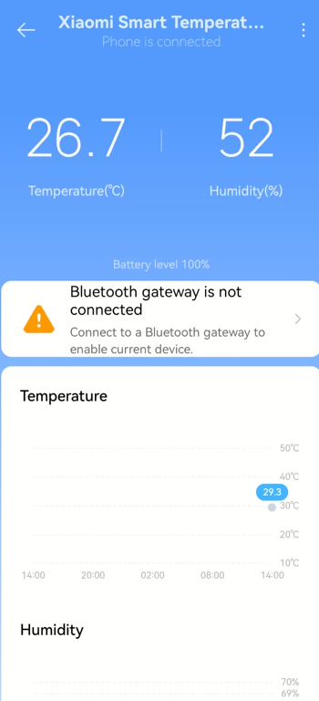 1. ผูก Xiaomi Smart Temperature and Humidity Monitor 3 เครื่องทําความชื้นและเกตเวย์ Bluetooth ภายใต้บัญชี Xiaomi หนึ่งบัญชี และระยะห่างระหว่างเกตเวย์ Bluetooth และ Xiaomi Smart Temperature and Humidity Monitor 3 ต้องไม่เกิน 5 เมตร