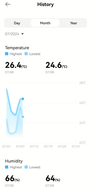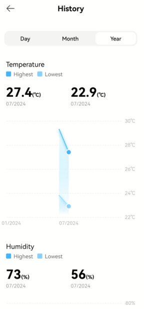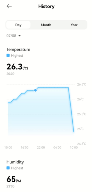 ตอบ: สนับสนุน Xiaomi Home Smart Temperature and Humidity Monitor 3 สามารถจัดเก็บค่าอุณหภูมิและความชื้นได้เป็นเวลา 3 เดือนในพื้นที่ หลังจากเชื่อมต่อกับโทรศัพท์หรือเชื่อมต่อกับเกตเวย์ Bluetooth แล้ว สามารถอัปโหลดค่าที่เก็บไว้ในเครื่องไปยังระบบคลาวด์ได้
