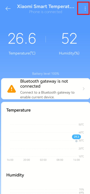1. หลังจากเชื่อมต่อ Xiaomi Smart Temperature and Humidity Monitor 3 กับแอป Mi Home/Xiaomi Home แล้ว ให้แตะ [Xiaomi Smart Temperature and Humidity Monitor 3] แล้วคุณจะเห็นหน้าแรก