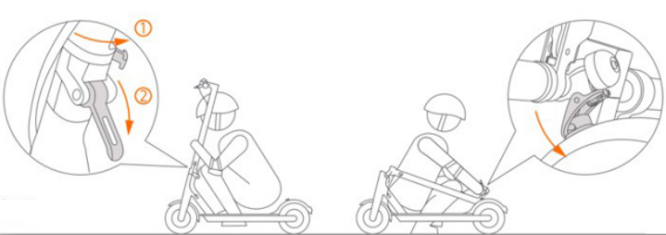 1. ปิดสกู๊ตเตอร์ไฟฟ้าก่อนพับรองรับการดึงนิ้วพับด้วยมือและเปิดประแจพับ
