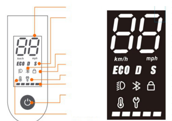 2. การแสดงโหมด: มีตัวบ่งชี้โหมดการขับขี่สามตัวบนแผงควบคุม เมื่อสกู๊ตเตอร์ไฟฟ้าทํางานในโหมดประหยัดพลังงานตัวบ่งชี้ ECO จะติดยาว เมื่อสกู๊ตเตอร์ไฟฟ้าทํางานในโหมดมาตรฐานไฟแสดงสถานะ "D" จะติดสว่างเสมอ เมื่อสกู๊ตเตอร์ไฟฟ้าทํางานในโหมดเคลื่อนไหวไฟแสดงสถานะ" S" จะติดสว่างเสมอ (โหมดประหยัดพลังงาน: ความเร็วสูงสุดประมาณ 15 กม. / ชม. โหมดมาตรฐาน: ความเร็วสูงสุดประมาณ 20 กม. / ชม. โหมด Sport: ความเร็วสูงสุดประมาณ 25 กม. / ชม. พร้อมพลังที่แข็งแกร่ง ขอแนะนําให้พิจารณาใช้หลังจากฝึกฝนทักษะการปั่นจักรยาน)