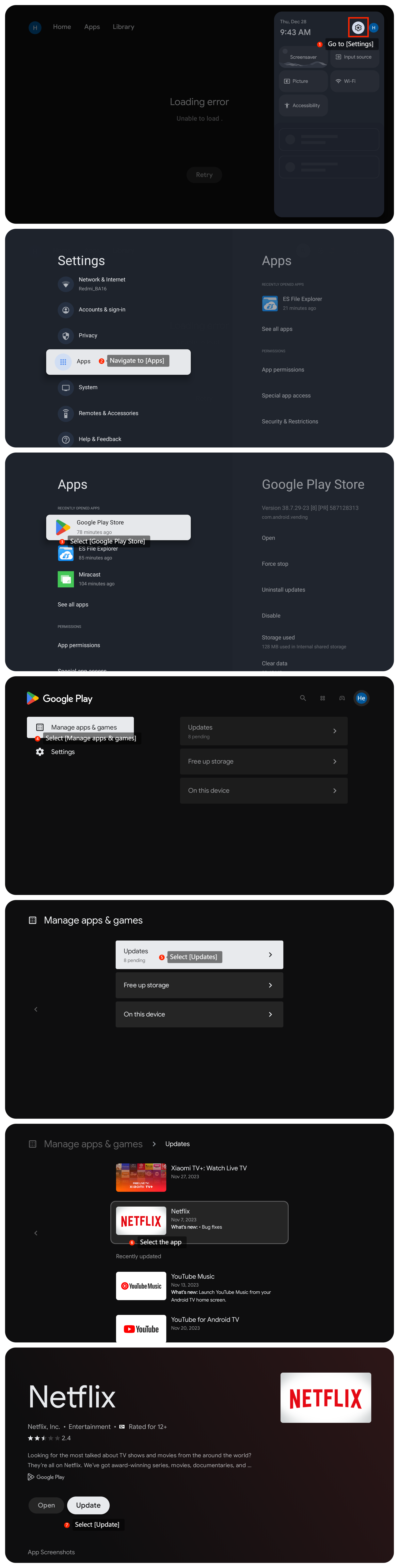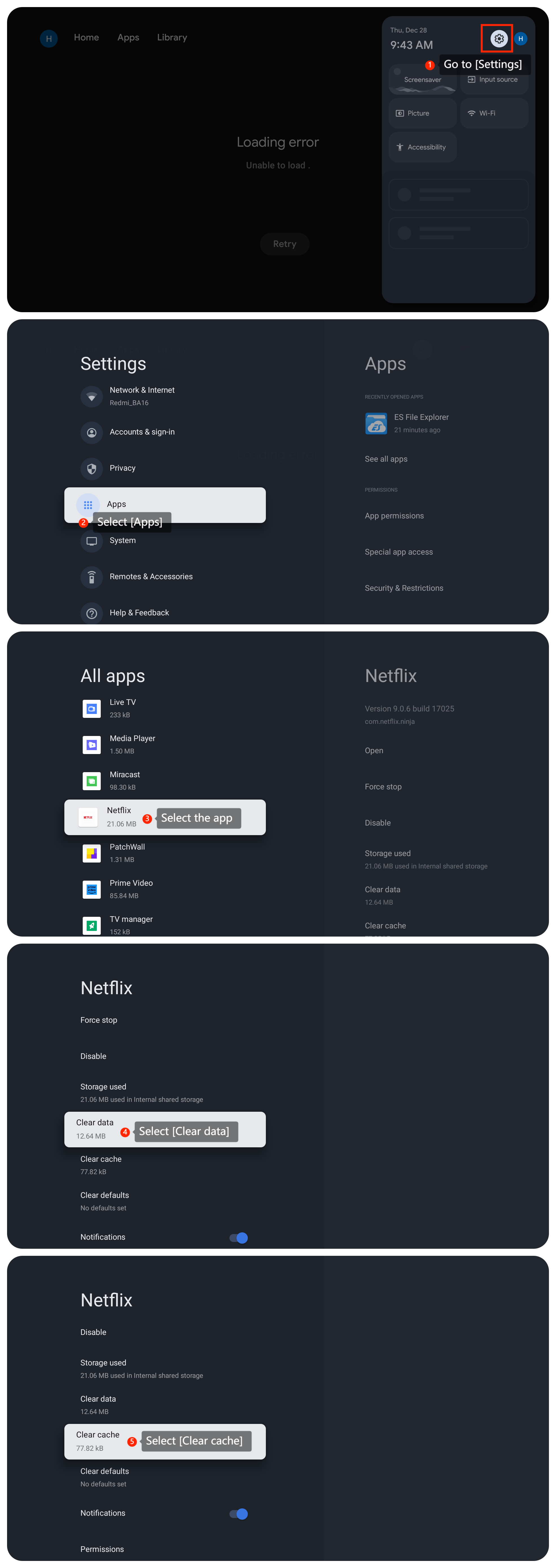 หากไม่สามารถเริ่มแอปบน Xiaomi TV A Pro 50 ได้ โปรดดูขั้นตอนต่อไปนี้: