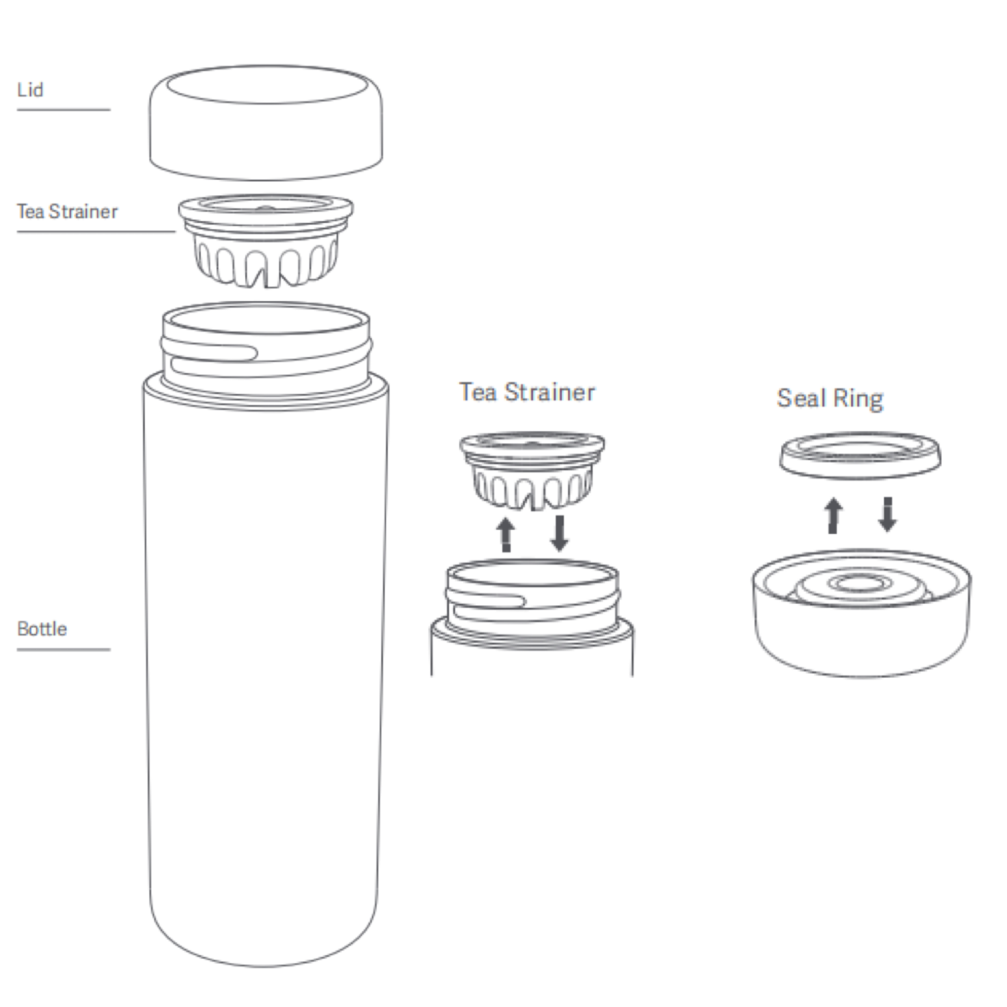 Xiaomi Insulated Water Bottle ประกอบด้วยสามส่วน: ฝาปิด กระชอนชา และขวด