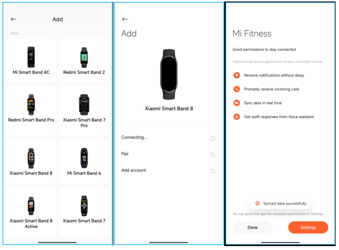 วิธีที่ 2: เพิ่มตามรุ่น: หน้าอุปกรณ์ Mi Fitness App -> บวกลงชื่อที่มุมขวาบน - >เพิ่มอุปกรณ์ - >เพิ่มตามรุ่น - >เลือก Xiaomi Smart Band 8 มันจะค้นหาอุปกรณ์ที่ใกล้ที่สุดโดยอัตโนมัติและขอเชื่อมต่อกับวงดนตรี เครื่องหมายถูกจะปรากฏขึ้นหลังวงแหวน คลิกเครื่องหมายถูกเพื่อยืนยันการผูก