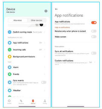 2.Q: Xiaomi Smart Band 8 รองรับฟังก์ชั่นหน้าจอแจ้งเตือนหรือไม่? ตอบ: รองรับ หลังจากเปิดใช้งานวงดนตรีจะสว่างขึ้นหน้าจอโดยอัตโนมัติเมื่อได้รับการแจ้งเตือนข้อความจากแอพมือถือ หากคุณเลือกที่จะปิดวงดนตรีจะไม่สว่างขึ้นและสั่นเมื่อได้รับข้อความเท่านั้น ซึ่งสามารถปรับปรุงอายุการใช้งานแบตเตอรี่ได้ในระดับหนึ่ง ตั้งค่าเส้นทาง: เปิดแอพ Mi Fitness - >อุปกรณ์ - > การแจ้งเตือนข้อความ - > อุปกรณ์จะเปิดหน้าจอโดยอัตโนมัติเมื่อได้รับข้อความ การตั้งค่าวงดนตรี - >การแจ้งเตือนข้อความ - > หน้าจอสว่างการแจ้งเตือน