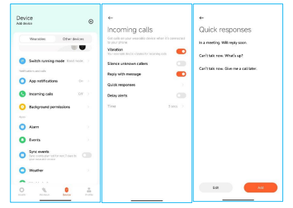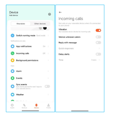 โน้ต: เนื่องจากระบบ iOS ไม่สามารถขออนุญาตตอบกลับข้อความได้ iOS จึงไม่รองรับการตอบกลับข้อความตัวอักษร6.ถาม: เหตุใดวงดนตรีของฉันจึงไม่สามารถรับการแจ้งเตือนสายเรียกเข้าได้ตอบ: โปรดยืนยันว่าการแจ้งเตือนสายเรียกเข้าในแอพเปิดอยู่หรือไม่ โปรดยืนยันว่าแอป Sports Health มีสิทธิ์เพียงพอหรือไม่รวมถึงการอนุญาตให้รับสายเรียกเข้าและการอนุญาตการทํางานเบื้องหลัง ฯลฯ เพื่อให้แน่ใจว่าแอป Sports Health สามารถผลักดันการโทรไปยัง วงดนตรีในพื้นหลังได้ โปรดยืนยันว่า วงดนตรีอยู่ในโหมดต่อไปนี้หรือไม่: