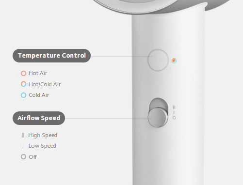 ตอบ: เครื่องเป่าผม Xiaomi Water Ionic H500 แบ่งออกเป็นความเร็วการไหลของอากาศและการควบคุมอุณหภูมิ:ความเร็วการไหลของอากาศ: ความเร็วต่ําความเร็วสูงการควบคุมอุณหภูมิ: อากาศเย็น, อากาศร้อน / เย็น, อากาศร้อนครั้งแรกที่เปิดเครื่องค่าเริ่มต้นคือ Hot Air กดปุ่มอุณหภูมิอากาศสั้น ๆ เพื่อวนผ่านโหมดอุณหภูมิอากาศ ในครั้งต่อไปที่เปิดเครื่องเครื่องจะมีค่าเริ่มต้นเป็นโหมดของครั้งสุดท้ายที่ปิดอยู่5.Q: สามารถใช้เครื่องเป่าผม Xiaomi Water Ionic H500 เป่าผมแห้งของทารกได้หรือไม่?ตอบ: หนังศีรษะของทารกบอบบางเกินไปไม่แนะนําให้ใช้เครื่องเป่าผมนี้เพื่อเป่าผมของทารกให้แห้ง6.Q: สามารถใช้เครื่องเป่าผม Xiaomi Water Ionic H500 ในร้านทําผมได้หรือไม่?ตอบ: เครื่องเป่าผม Xiaomi Water Ionic H500 มีสายไฟยาว 1.7 ม. ดังนั้นจึงสามารถใช้ในร้านทําผมได้ ขอแนะนําให้พิจารณาความยาวของสายไฟเมื่อซื้อ7.Q: สามารถนําเครื่องเป่าผม Xiaomi Water Ionic H500 H500 ไปยังที่อื่นเพื่อใช้งานได้หรือไม่?ตอบ: แรงดันไฟฟ้าที่กําหนดของเครื่องเป่าผม Xiaomi Water Ionic H500 คือ 220V ขอแนะนําให้ตรวจสอบว่าแรงดันไฟฟ้าในพื้นที่ของคุณตรงตามช่วงแรงดันไฟฟ้า 220V ก่อนหรือไม่8.Q: ความหมายของไฟแสดงสถานะเครื่องเป่าลมบน Xiaomi Water Ionic Hair Dryer H500 คืออะไร?ตอบ: ครั้งแรกที่เปิดเครื่องเป่าผมเริ่มต้นคืออากาศร้อนไฟแสดงอุณหภูมิลมที่อยู่ตรงกลางของเครื่องเป่าลมจะสว่างขึ้นไฟนี้จะแสดงสีที่แตกต่างกันขึ้นอยู่กับโหมดฟังก์ชั่นที่เลือก มันไม่เป็นอันตรายต่อดวงตาของมนุษย์ แต่ไม่แนะนําให้จ้องมองเป็นเวลานาน