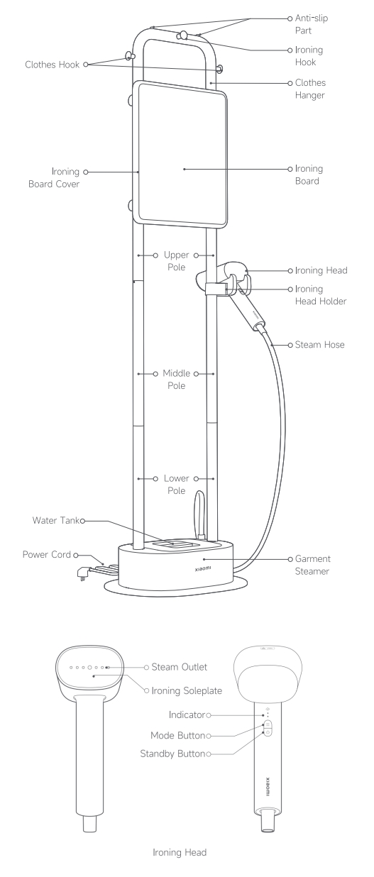 ตอบ: ลักษณะของ Xiaomi Standing Garment Steamer ดังแสดงในภาพด้านล่าง: