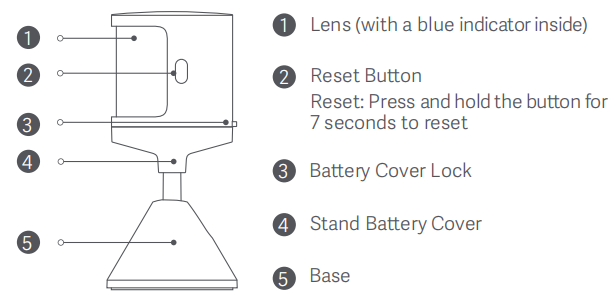 มีเลนส์, ปุ่มรีเซ็ต, ล็อคฝาครอบแบตเตอรี่, ฝาครอบแบตเตอรี่ขาตั้งและฐาน