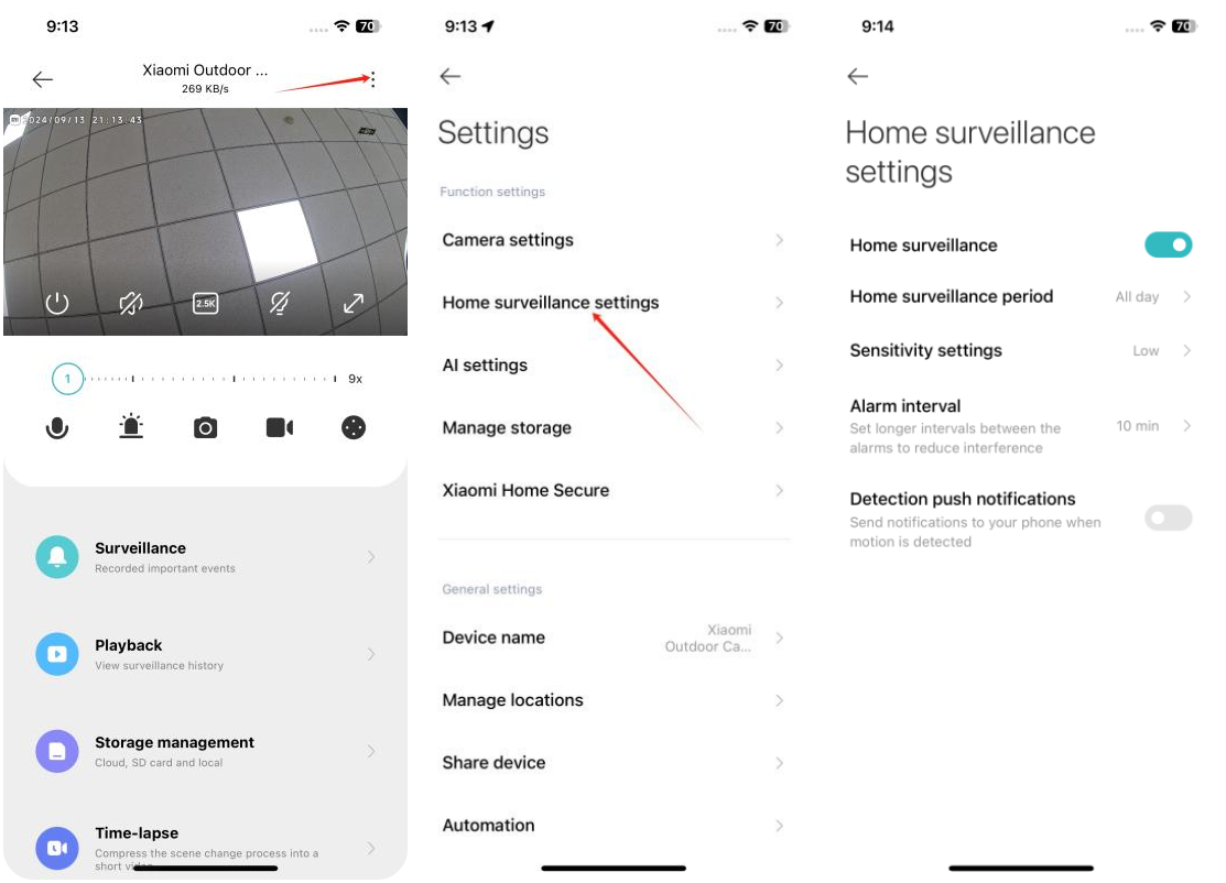 ตอบ: 1. เปิดแอป Mi Home/Xiaomi Home>>เลือกกล้อง>> [กล้อง]> >[ตรวจจับอัตโนมัติ];