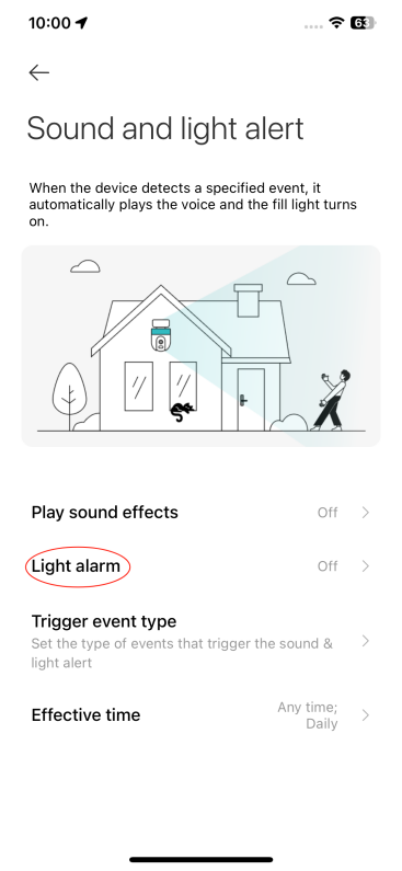 3. นอกจากนี้ คุณสามารถเปิดใช้งาน [Someone nters the fenced area] และ [Someone le aves the fenced area] ใน [การตั้งค่า]> > [กล้อง] >> [เสียงและการแจ้งเตือน] >>[ ทริกเกอร์ระบายอากาศ] อุปกรณ์จะเล่นเสียงเตือนและเปิดไฟเสริมเมื่อตรวจพบเหตุการณ์เหล่านี้