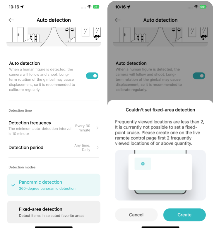 ตอบ: 1. ในอินเทอร์เฟซของอุปกรณ์ ให้แตะไอคอนสามจุดที่มุมขวาบนเพื่อไปที่การตั้งค่า >> [AI settings] >> เปิดใช้งานคุณสมบัติรั้วเสมือน