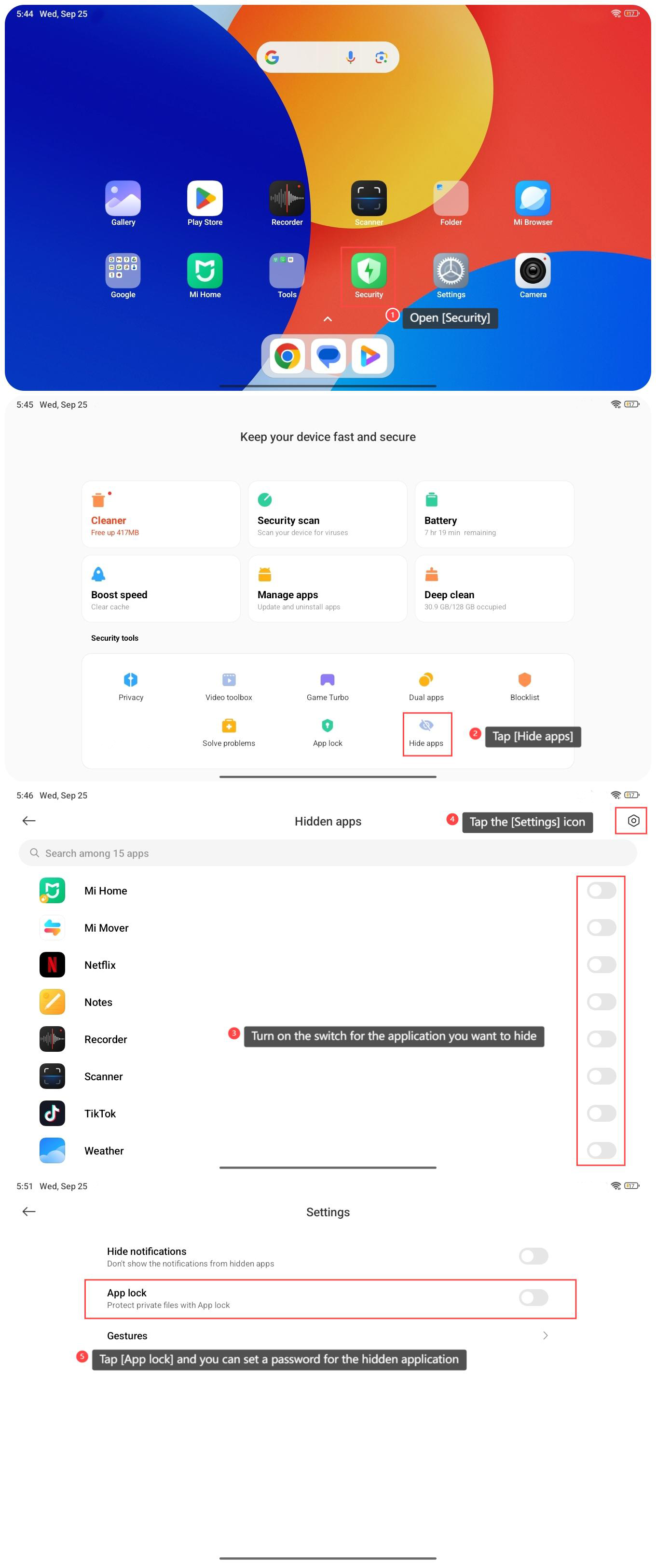 หากต้องการซ่อนแอปพลิเคชันบน REDMI Pad SE 8.7 โปรดดูขั้นตอนต่อไปนี้: