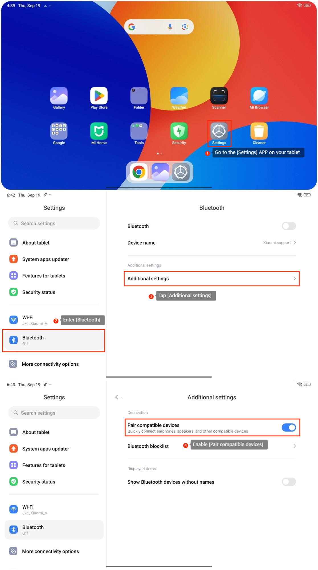 หากต้องการจับคู่แท็บเล็ตของคุณกับอุปกรณ์ Bluetooth อื่นๆ อย่างรวดเร็ว โปรดดูขั้นตอนต่อไปนี้: