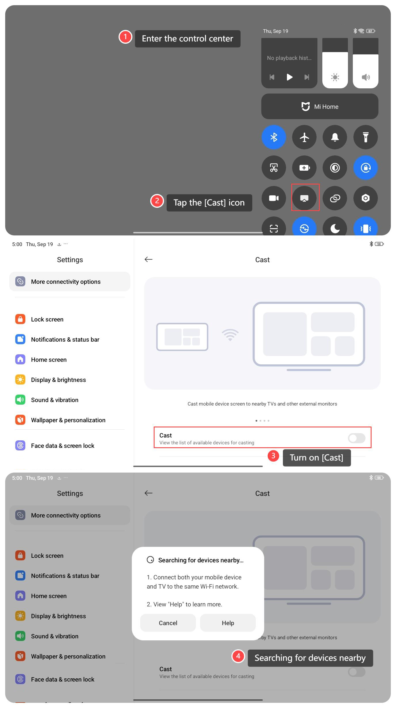 Redmi Pad SE 8.7 มาพร้อมกับคุณสมบัติที่เรียกว่า Cast ที่ให้คุณแชร์หน้าจอแท็บเล็ตกับจอภาพภายนอกอื่นๆ ที่เข้ากันได้ เช่น สมาร์ททีวี อุปกรณ์สตรีมมิ่ง หรือจอแสดงผลอื่นๆ