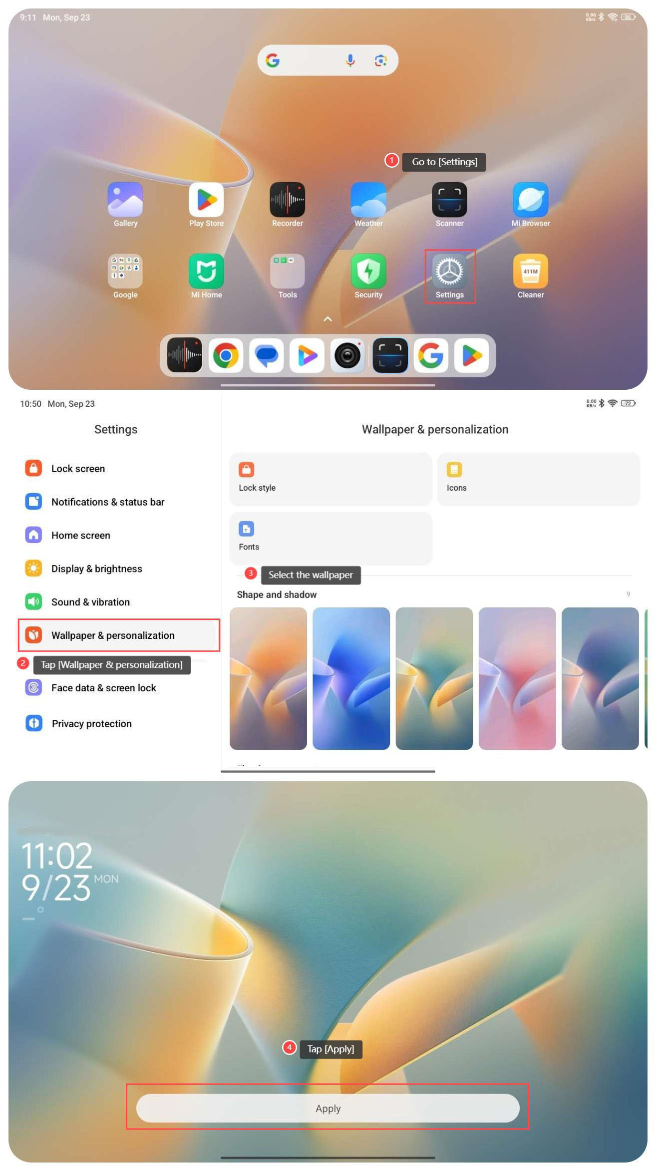 จะตั้งค่าวอลเปเปอร์หน้าจอหลักบน REDMI Pad SE 8.7 ได้อย่างไร