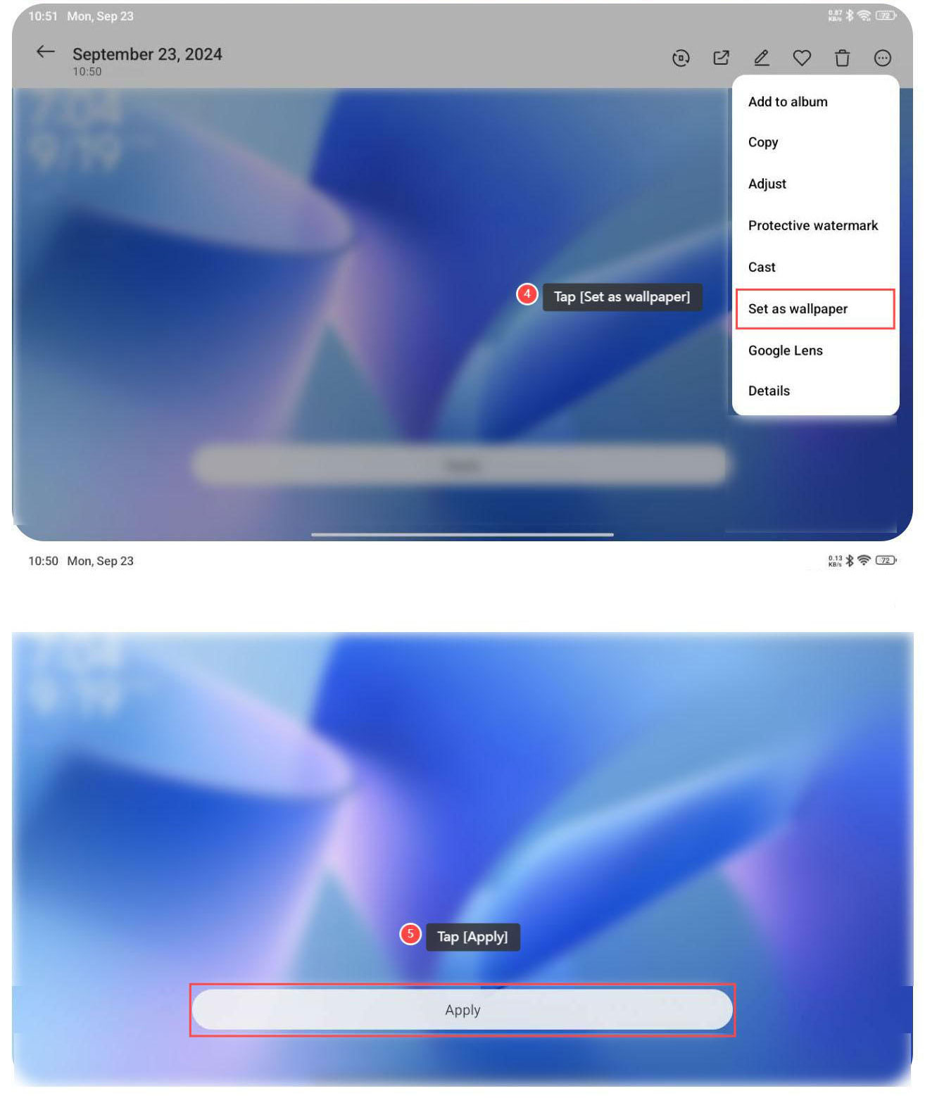 4. แตะ [ตั้งเป็นวอลเปเปอร์];