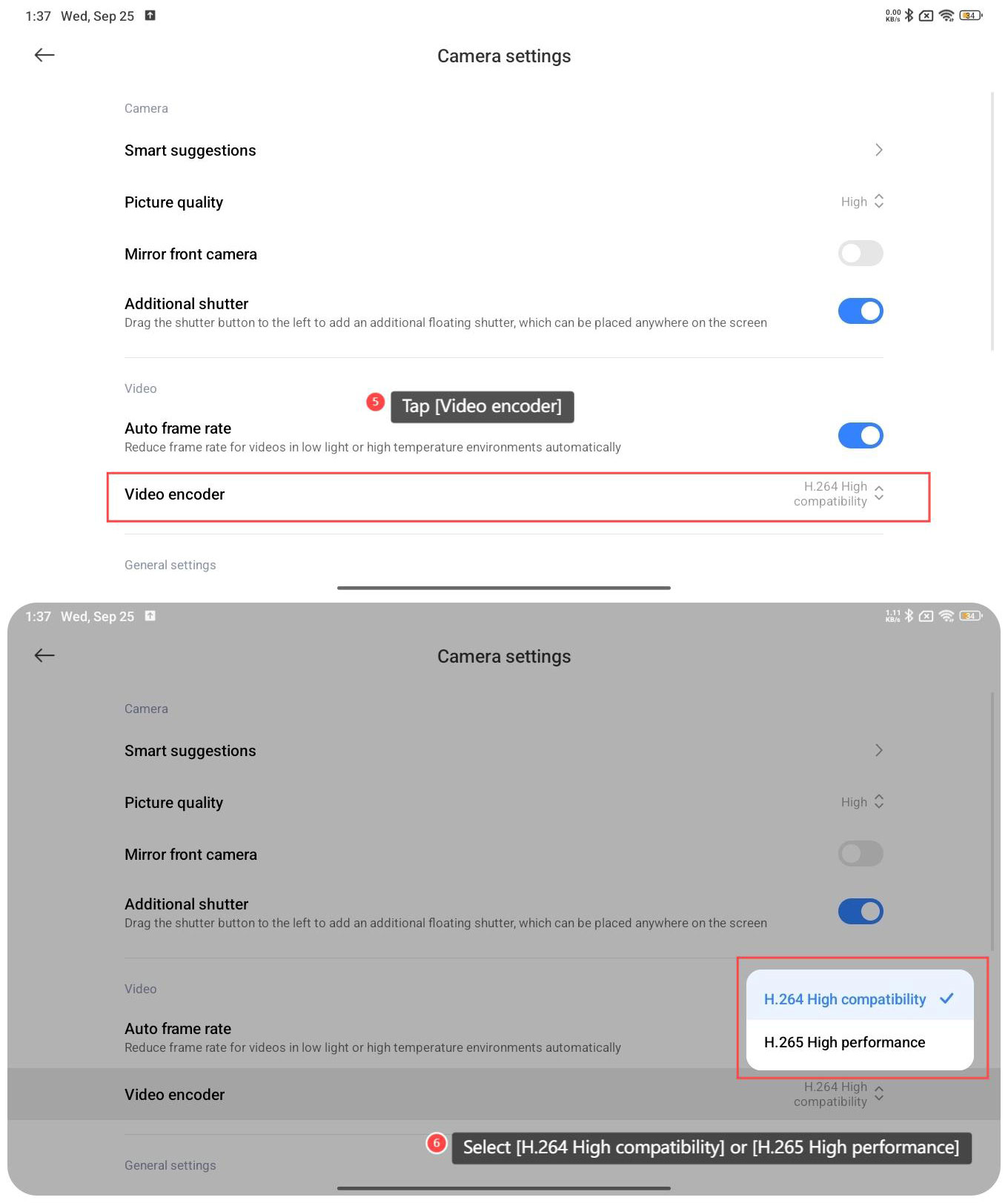 5. แตะ [ตัวเข้ารหัสวิดีโอ];