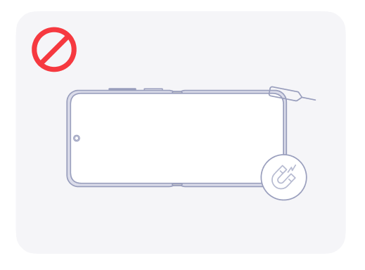 2. ส่วนประกอบแม่เหล็กฝังอยู่ที่มุมใต้หน้าจอ ก่อนพับโทรศัพท์ ให้ตรวจสอบบริเวณโดยรอบว่ามีเศษโลหะที่อาจดึงดูดหน้าจอหรือไม่