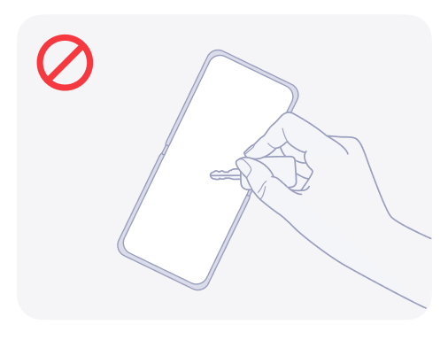 1. หลีกเลี่ยงการกดหน้าจอด้วยวัตถุมีคม (ปลายปากกา เล็บมือ ฯลฯ) ในขณะที่คุณใช้หรือพกพาอุปกรณ์ ก่อนพับอุปกรณ์ ตรวจสอบให้แน่ใจว่าหน้าจอด้านในปราศจากวัตถุแข็ง เช่น การ์ด เหรียญ หรือกุญแจ